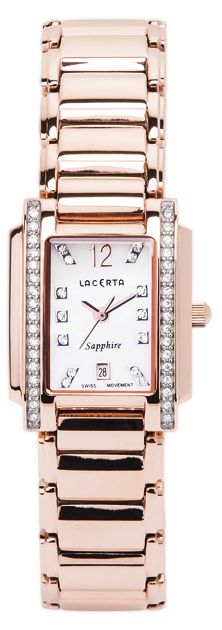 Šperkové hodinky Lacerta tvoří špičku nabídky náramkových hodinek firmy JVD, jak po stránce kvality, tak po stránce vlastní tvořivosti. Základem je opět nerezová ocel, safírové sklo na všech modelech a nejkvalitnější švýcarský strojek značky RONDA. Zdobení pravými zirkony na tahu i ciferníku, které nejsou lepené, ale pasované. Vše je prvotřídně zpracováno a v té nejvyšší kvalitě.