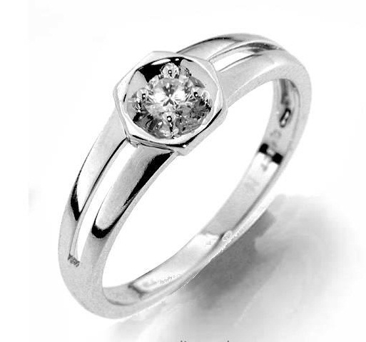 Prsten z bílého zlata s diamantem je vhodný jako dárek k významné životní události. Na objednání je možnost výběru: kvalita a barva kamene, ryzost zlata 14 nebo 18 karátů.