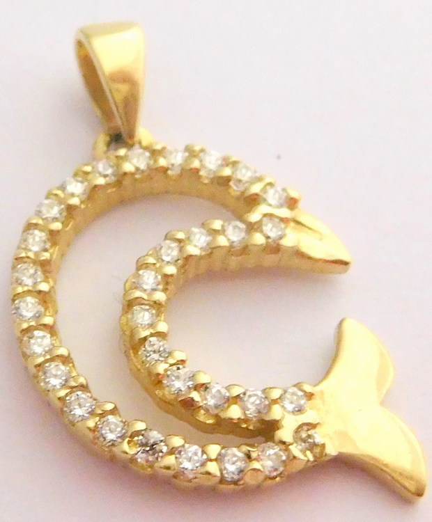 Klenoty Budín Zlatý přívěsek - zlatý delfín posetý zirkony 585/1,55gr HK3045
