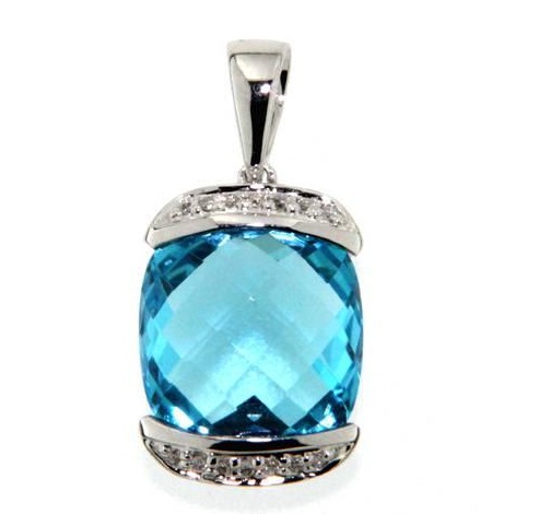 - Luxusní přívěsek s diamanty, blue topaz, kolekce Glare, bílé zlato