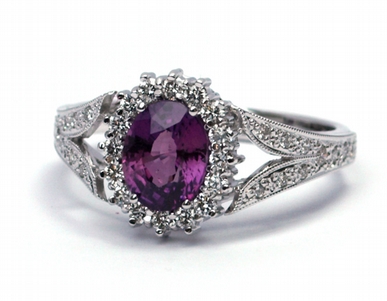 Luxusní zásnubní prsten s červenofialovým safírem 585/3,86 gr J-20921-12