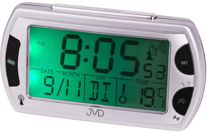 Pomocí tohoto budíku značky JVD budete znát nejpřesnější čas na kontinentu. Přijímá totiž časový signál z Frankfurtu, jehož možná odchylka je menší než 1 sekunda za 2 miliony let!