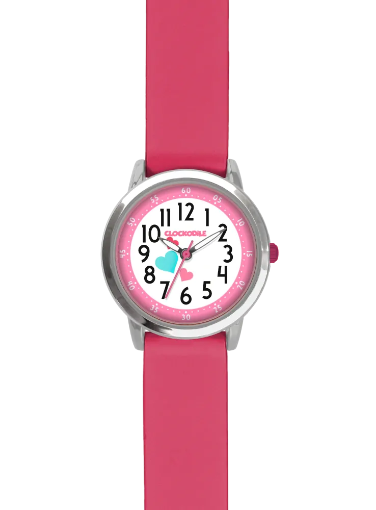 CLOCKODILE Náramkové růžové dívčí dětské hodinky se srdíčky a tmavě růžovým silikonovým řemínkem CWG5172
