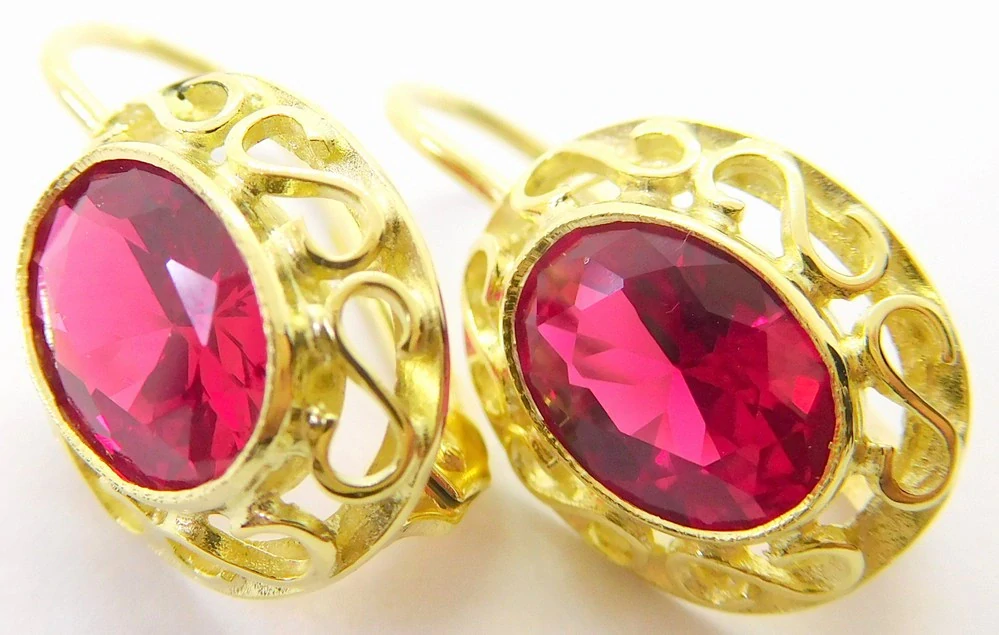 - Klenoty Budín Dámské velké zlaté klasické náušnice s velkými červenými rubíny ryz. 585/2,81gr 236040434