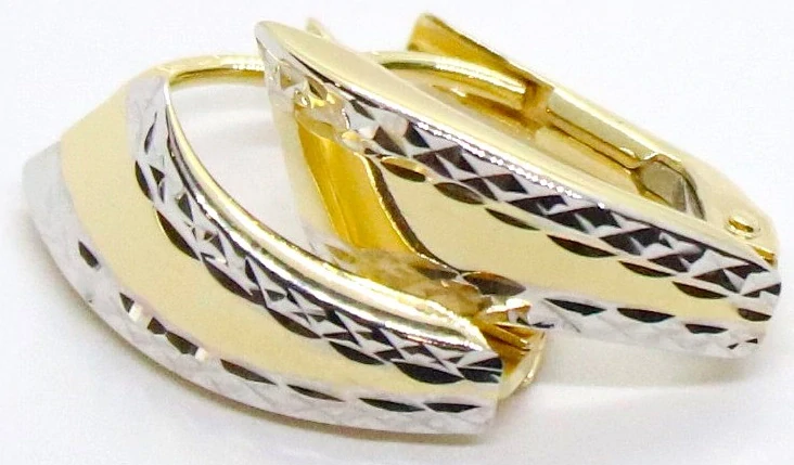 Klenoty Budín Dámské zlaté náušnice z bílého a žlutého zlata s gravírováním 585/1,34gr HK2391Skladem6 860 Kč/ ks5 669 Kč bez DPH