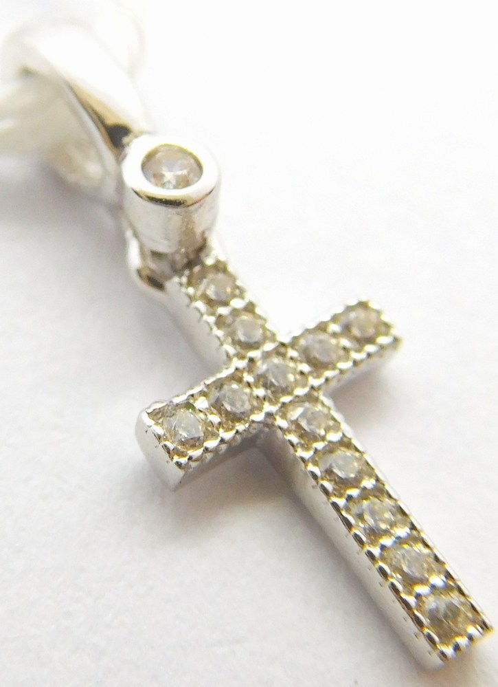 - Klenoty Budín Dámský zlatý přívěsek křížek se zirkony v bílém zlatě 585/0,51gr GUPWB-35441