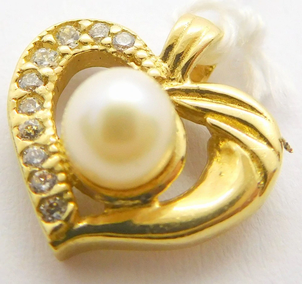 Klenoty Budín Dámský zlatý přívěsek se zirkony a perlou zamilované srdíčko 585/1,18gr HK3269