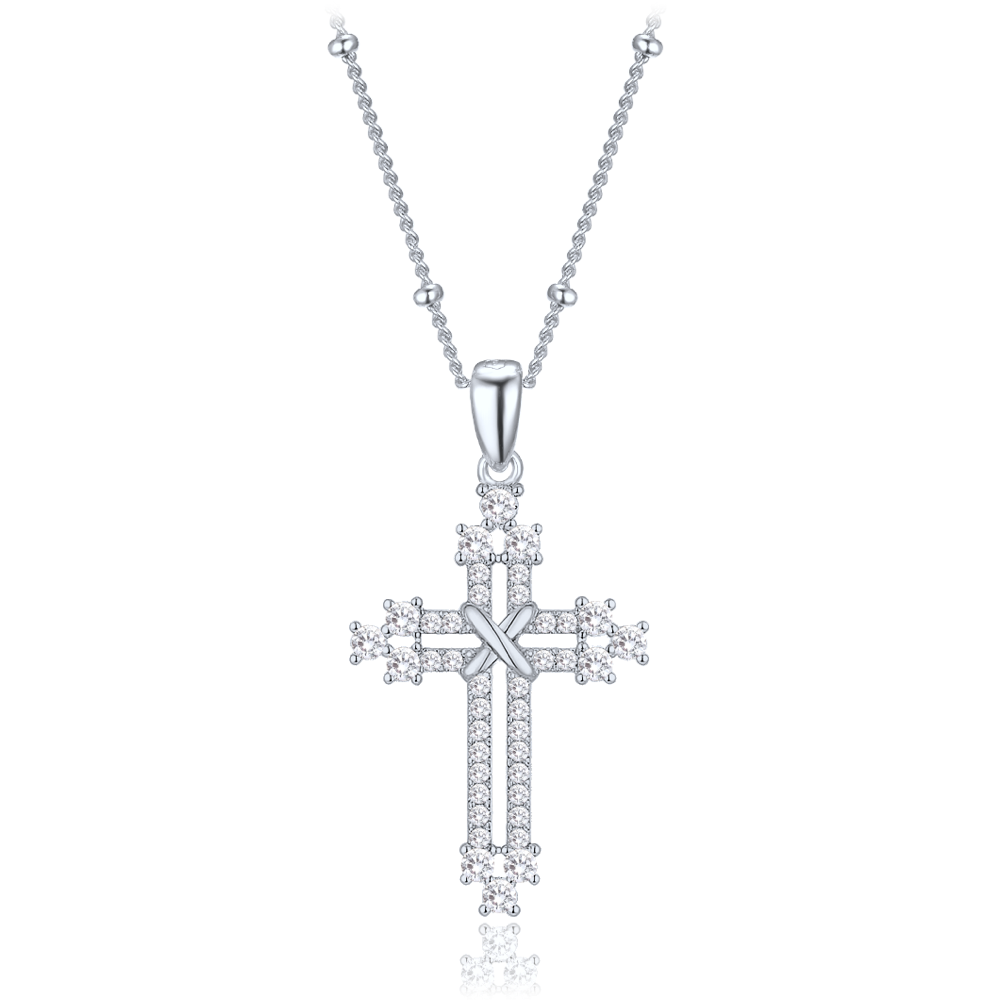 - MINET Stříbrný náhrdelník křížek se zirkony a řetízek s kuličkami