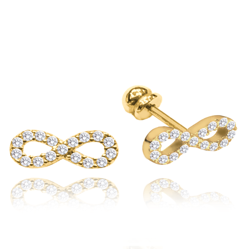 MINET Zlaté náušnice nekonečna na šroubek s bílými zirkony Au 585/1000 1,25g JMG0121WGE03