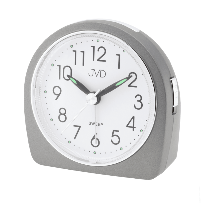 Analogový budík JVD šedé barvy s tichým chodem, svítícími čísly a kombinovaným buzením pomocí světla a zvuku je skvělou volbou pro každého!