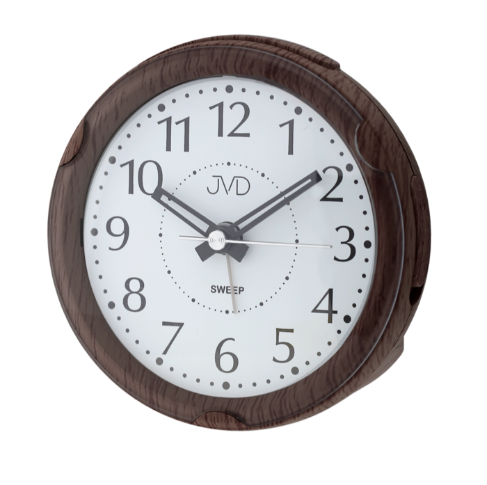 Analogový netikající tichý budík JVD SRP876.6 v imitaci dřeva - tmavéSkladem425 Kč/ ks351 Kč bez DPH