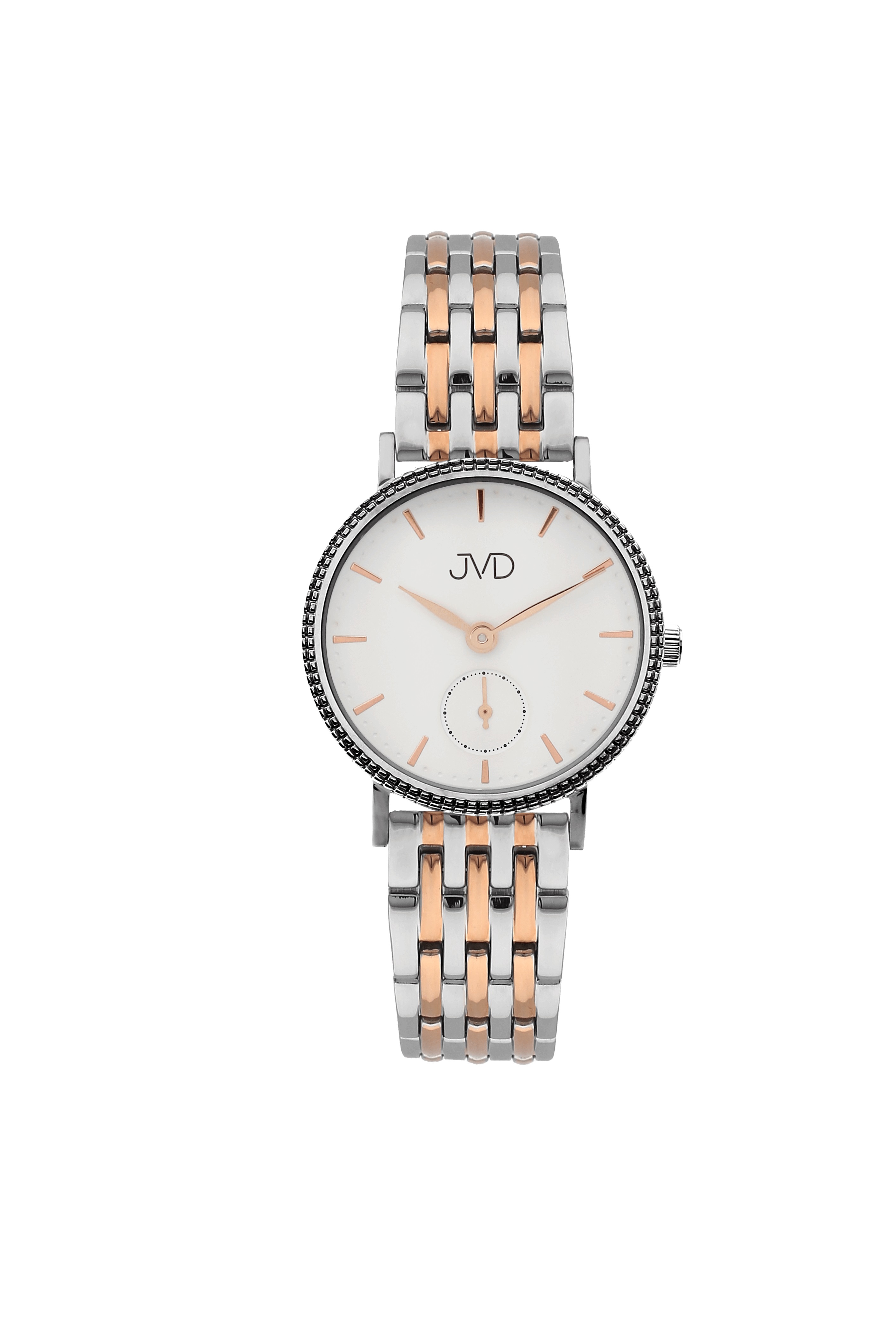 Design dámských hodinek JVD je překvapivě důmyslný. Chladná nerezová ocel, rafinované pozadí, ladné proporce a zajímavé detaily dávají najevo, že jako majitelka takových hodinek nebudete lehce k mání a rozhodně víte, co chcete.