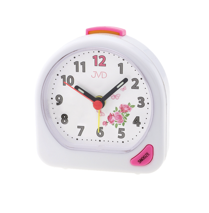 Dětský bílý ručkový budík JVD SR672.1 s růžovými doplňky