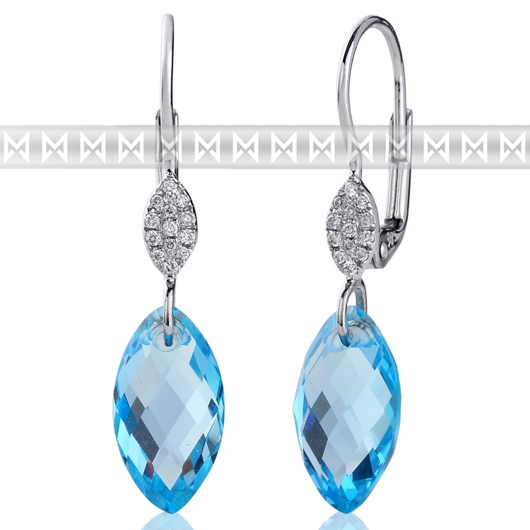 Diamantové náušnice, bílé zlato briliant, modrý topaz (blue topaz) 3880367-0-0-