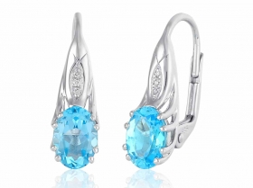 - Diamantové náušnice, bílé zlato briliant, modrý topaz (blue topaz)