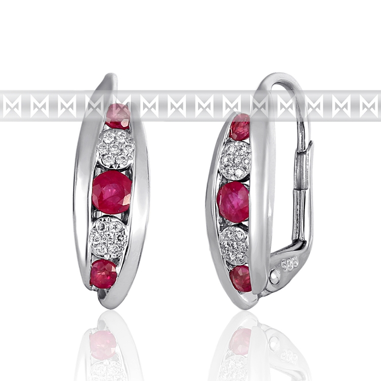 Diamantové náušnice, bílé zlato briliant, rubín 3881038-0-0-94