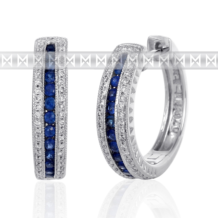 - Diamantové náušnice, bílé zlato briliant, safír - kruhy osazené diamanty
