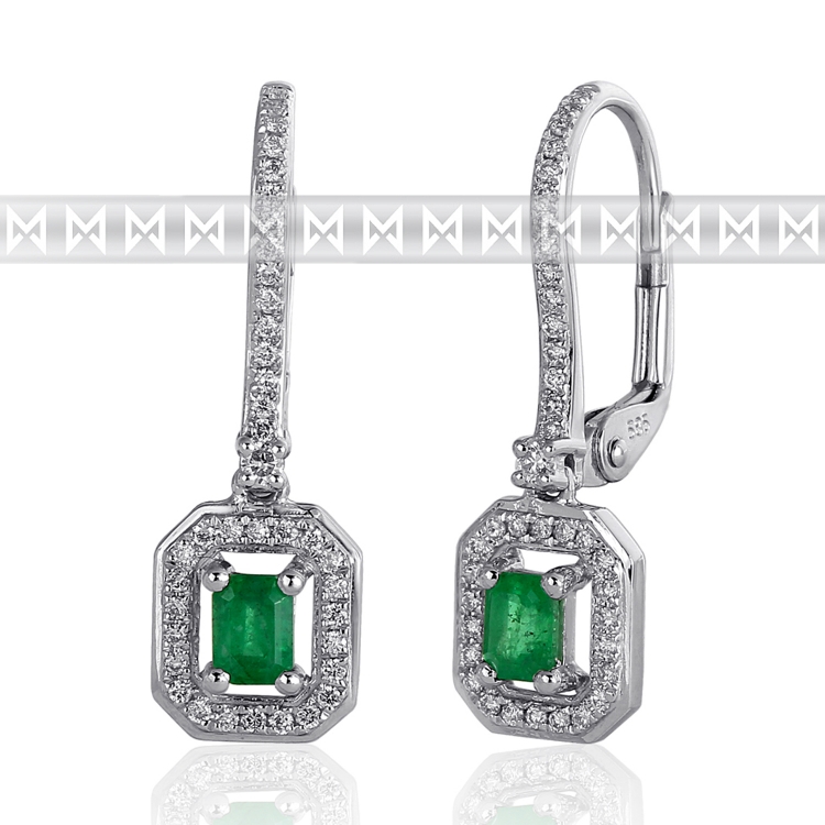 - Diamantové náušnice, bílé zlato briliant, smaragd (emerald) a diamanty