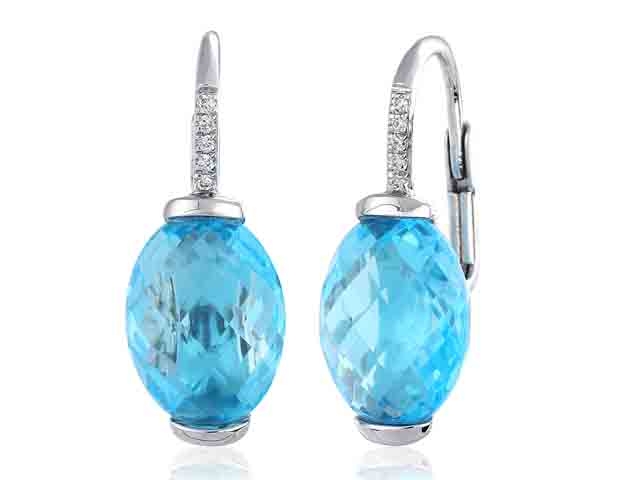 - Diamantové náušnice s přírodními diamanty a modrými topazy (velké) blue topaz
