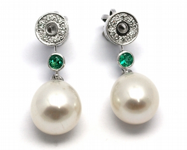Diamantové náušnice se smaragdy a perlami 585/2,60 gr J-21265-12