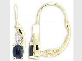 - Diamantové náušnice, žluté zlato briliant, modrý safír 585/1,95 gr