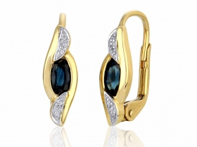 - Diamantové náušnice, žluté zlato briliant, tmavý safír 585/2,05 gr