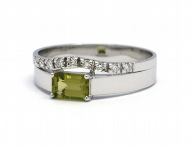 Diamantový dámský prsten s přírodním olivínem 585/2,97 gr J-21010-12