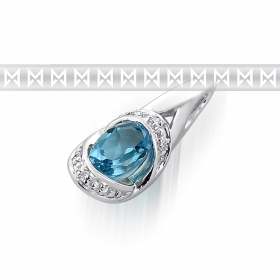 Diamantový přívěsek z bílého zlata s diamanty a světle modrým topazem 585/1,15gr