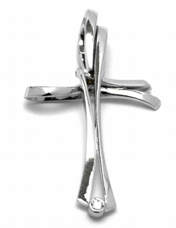 Diamantový zlatý přívěsek křížek s diamantem 585/2,23 gr J-21787-12