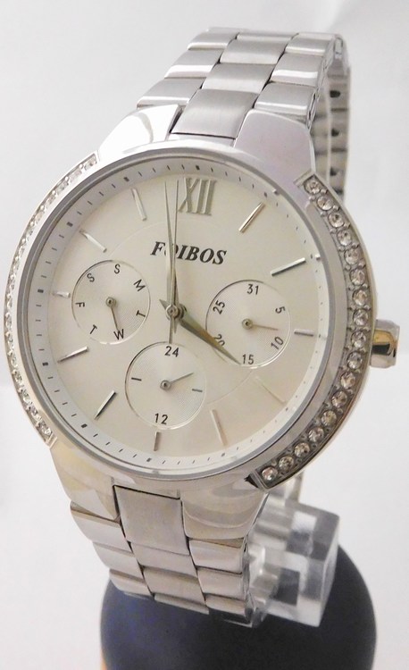 Dámské šperkové stříbrné voděodolné přehledné hodinky Foibos 3L77