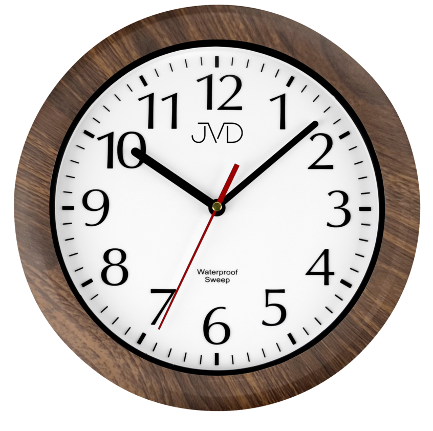 Tyto hodiny z řady JVD basic jsou vhodným ukazatelem času do prostředí kde je vysoká vlhkost vzduchu nebo mokro. Výborně se hodí do kuchyní nebo například k bazénu. Nepropustí dovnitř těla žádnou vlhkost díky tomu, že strojek je kompletně uzavřen a izolován v plastovém pouzdře hodin.