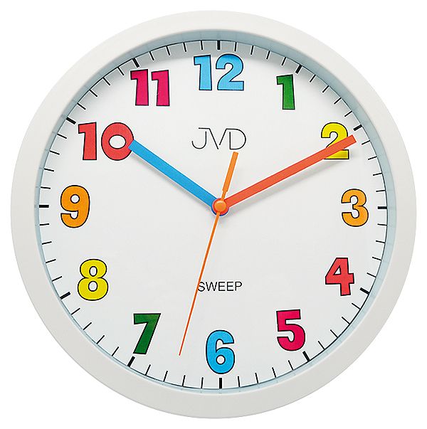 JVD Bílé nástěnné barevné tiché netikající dětské hodiny JVD sweep HA46.3Skladem399 Kč/ ks330 Kč bez DPH