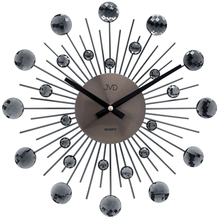 - Designové kovové antracitové paprskovité skleněné hodiny JVD HT111.3