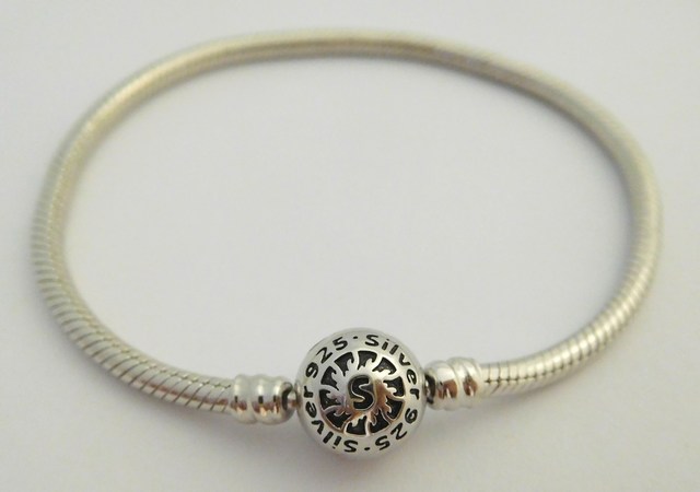 Na stříbrný náramek se navlékají přívěsky / korálky, které se dají různě kombinovat.