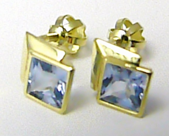 Klenoty Budín Dámské zlaté pecičky s modrými akvamaríny na šroubek 585/1,12gr 236040918