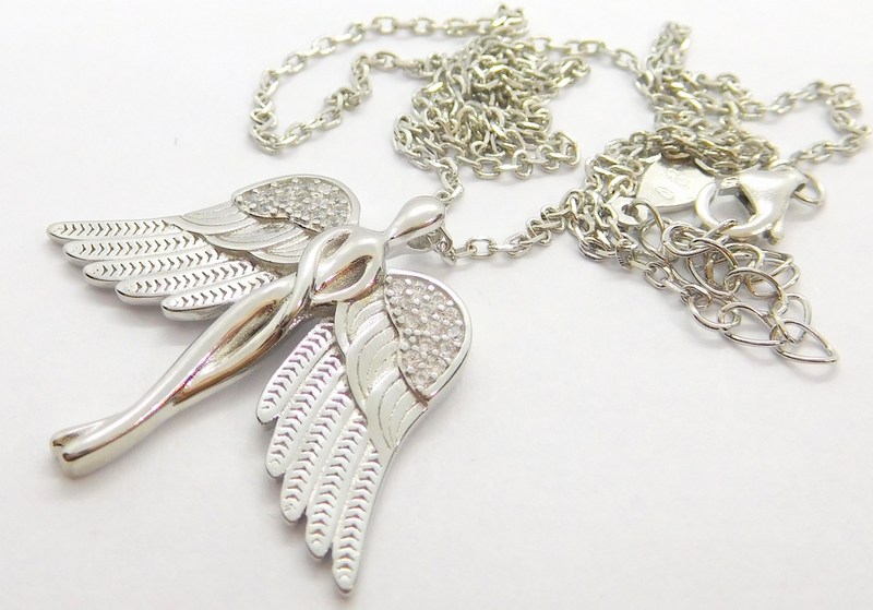 - Klenoty Budín Dámský stříbrný náhrdelník s velkým andělem se zirkony 45+5cm 925/1000 030896100005