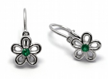 Dětské náušnice s přírodními zelenými smaragdy 585/1,46 gr J-21309-12