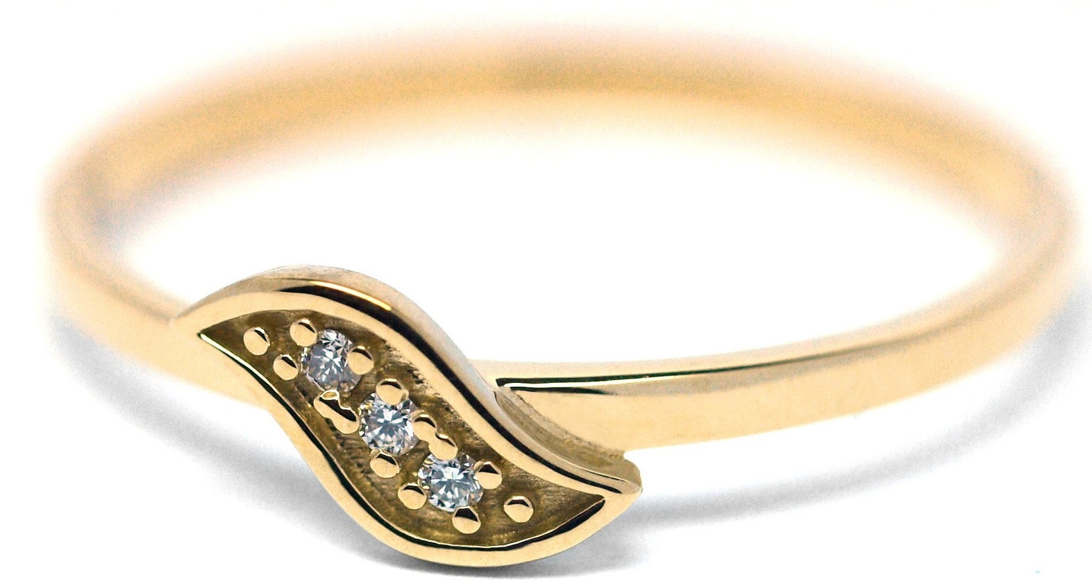 Prsten ze žlutého zlata s diamanty vyrobený kombinací ruční a strojové práce