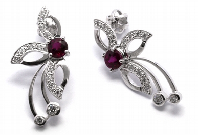 Diamantové náušnice s přírodními červenými rubíny 585/3,15 gr J-21046-12