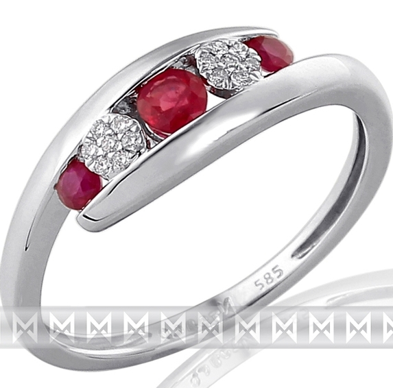 Diamantový zlatý prsten z bílého AU s pravými rubíny 3x0,29ct 585/2,3 gr 3861968