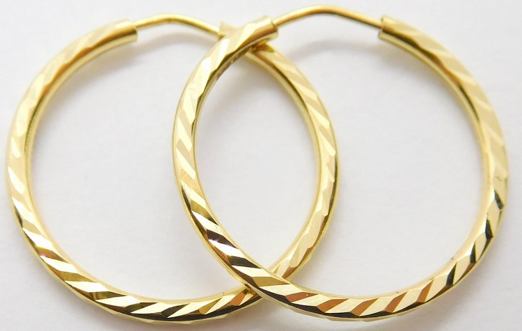 - Klenoty Budín Gravírované zlaté kruhy - náušnice průměr 2,6cm 585/1,98gr HK2058