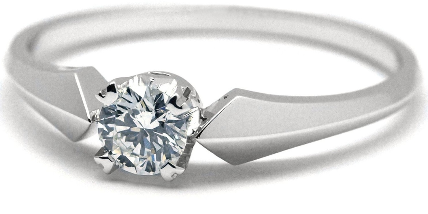 Zásnubní prsten z bílého zlata s diamantem vyrobený kombinací ruční a strojové práce