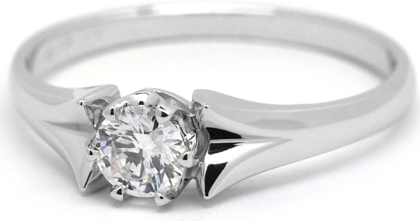 Zásnubní prsten z bílého zlata s diamantem vyrobený kombinací ruční a strojové práce