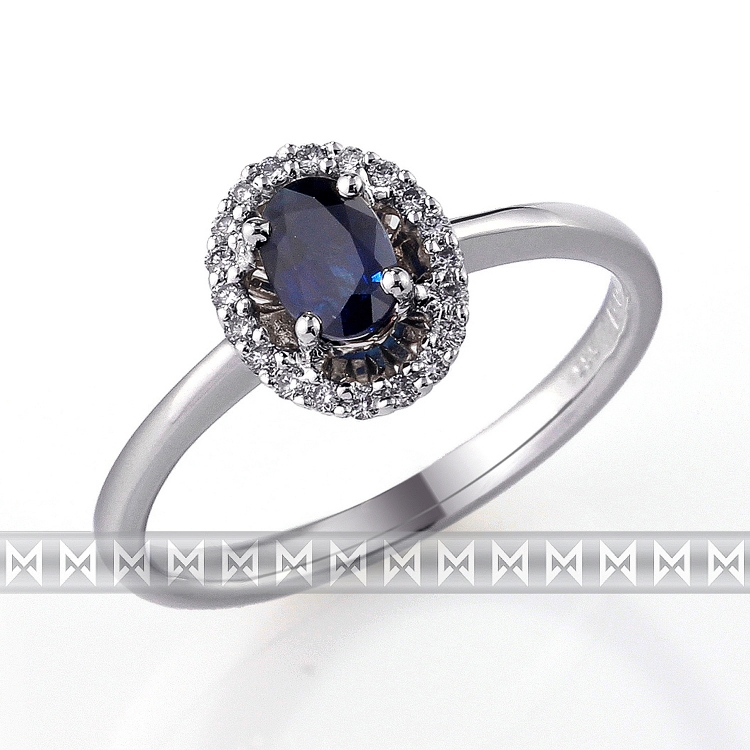 Luxusní diamantový zlatý prsten s velkým modrým safírem (KATE) vel. 55
