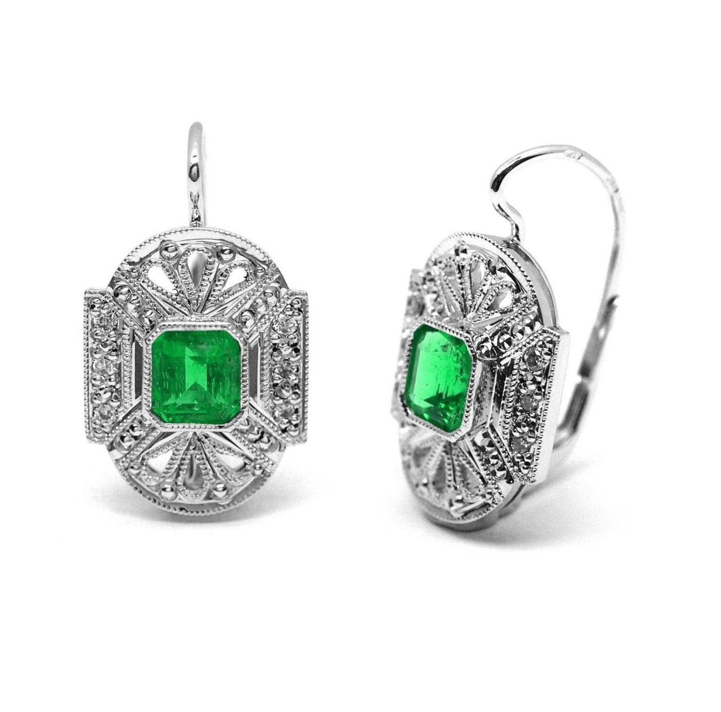 Ručně vyrobené náušnice z bílého zlata se smaragdy a diamanty