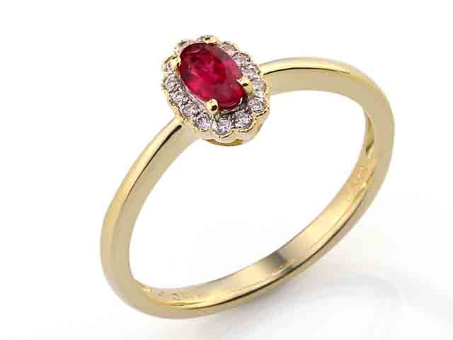 Prsten s diamantem, žluté zlato briliant, rubín v kombinaci bílé zlato, v provedení s lesklou povrchovou úpravou - popis produktu