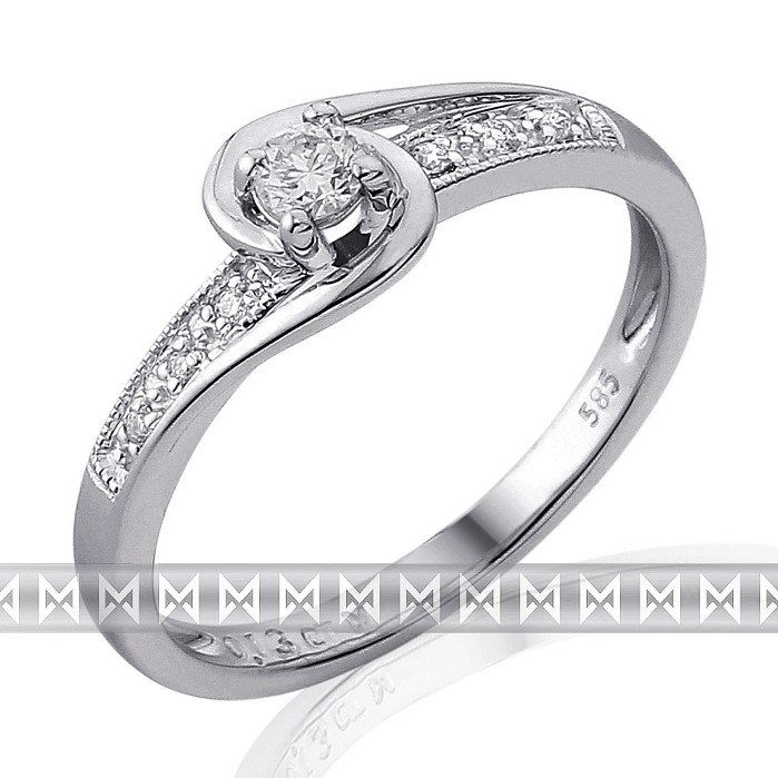 Luxusní zásnubní diamantový prsten z bílého zlata 1/0,11 ct + 6/0,03 ct 585/2,0g