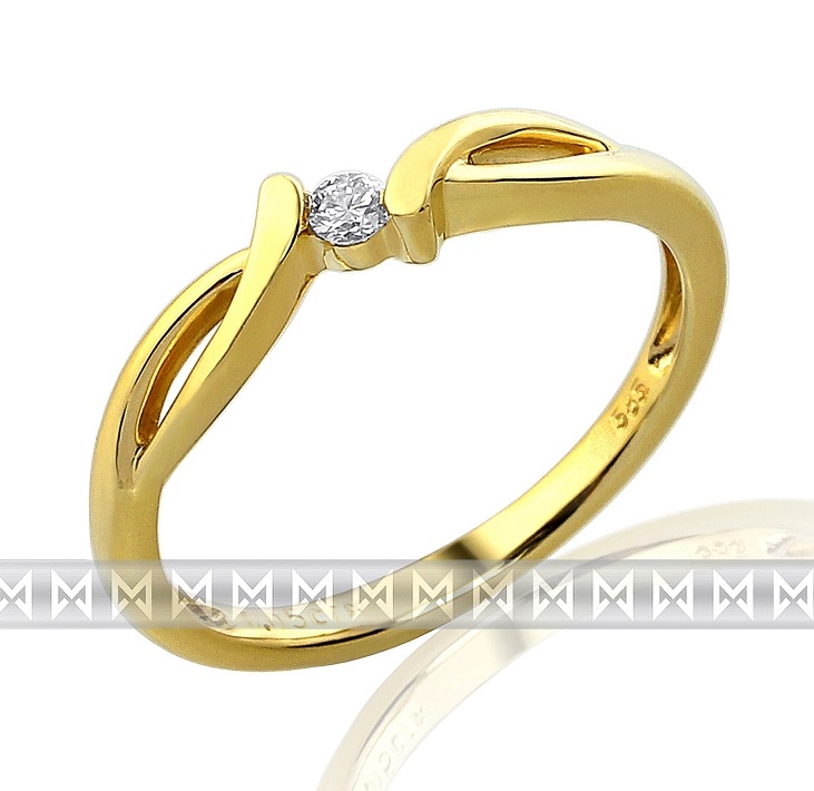 Luxusní zásnubní zlatý prsten ze žlutého zlata s diamantem (briliant) - 1,95gr
