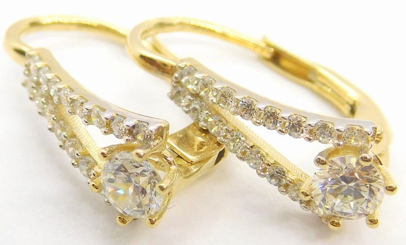 - Klenoty Budín Mohutné luxusní zlaté náušnice se zirkony 34 ks 585/2,18gr HK2081