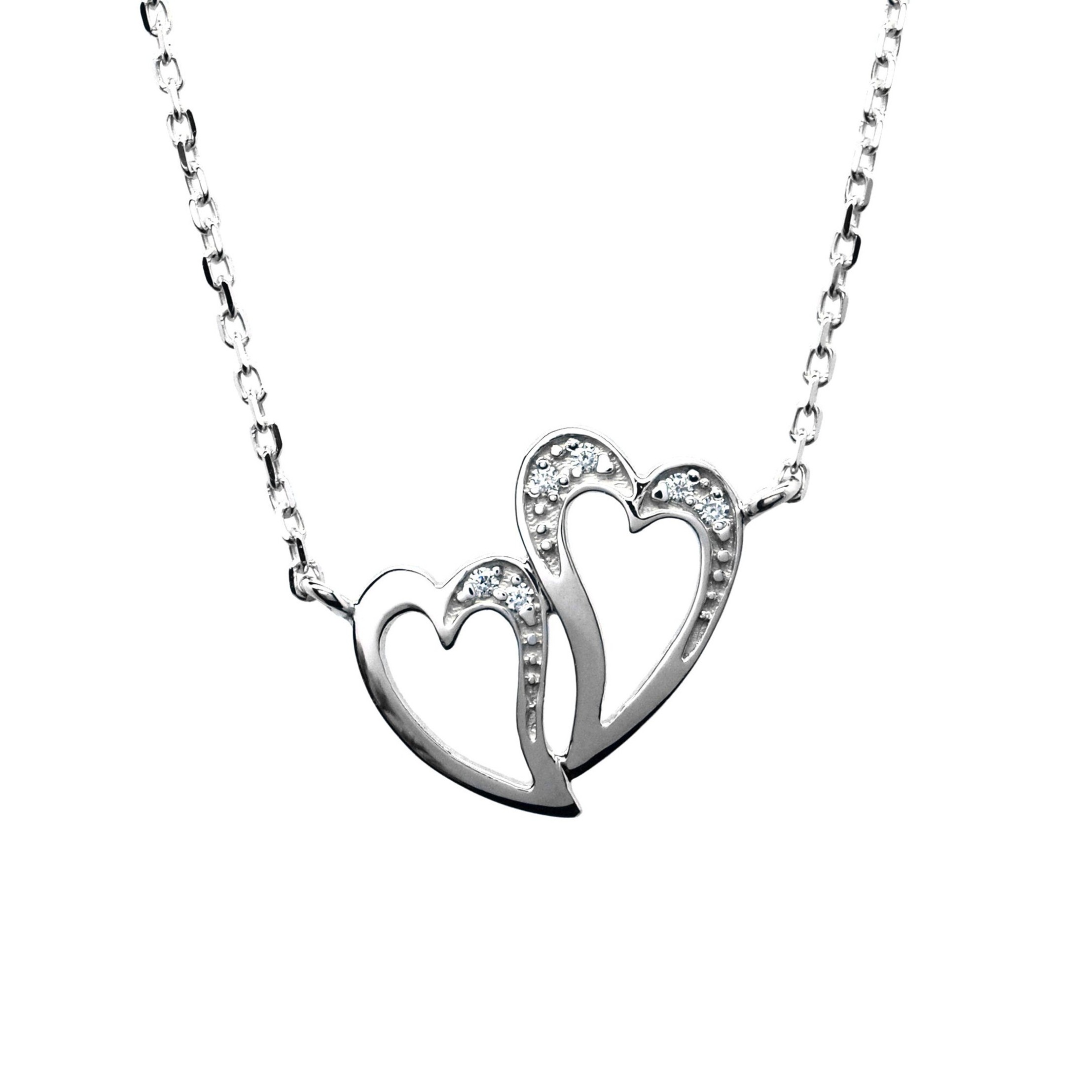 - Klenoty Budín Náhrdelník srdíčka z bílého zlata s diamanty J-28283-17